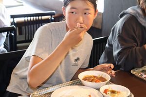 見学の後は、「あしょろ庵」で昼食です。カレーライスを食べました。