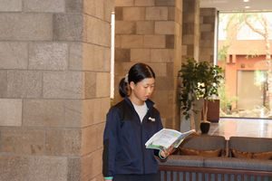 そして、いよいよホテルに到着です。入館式の司会とあいさつを担当しました。