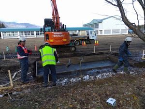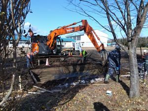 本日、クニオカ工業様による、走幅跳の砂場造成が行われました。
