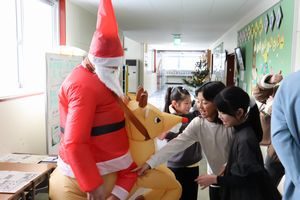 本日、学校にあわてんぼうのサンタクロースがやってきました。