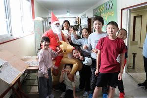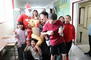 人気者のサンタさんは、あっという間に子どもたちに囲まれていました。