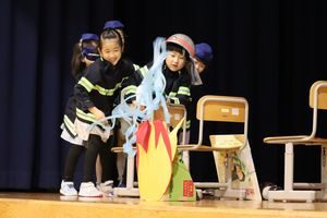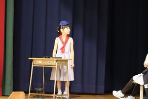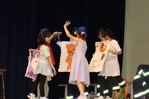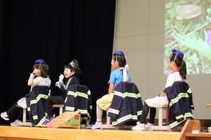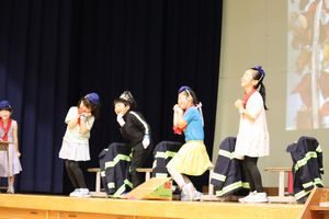 生活科の学習で見学に訪れた、和琴半島やお店等で発見したことや学んだことを写真や寸劇を交えて発表しました。