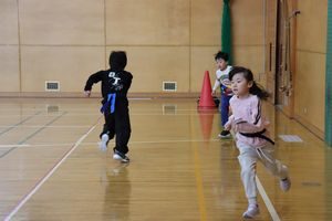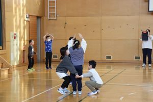「村まつり」の曲に合わせて、歌隊・掛け声隊・リズム隊に分かれて、まつりの音楽を作りました。