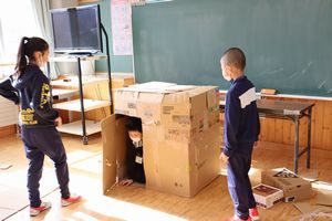オンラインで考えたアイディアをもとに、ゆめのまちを作りました。