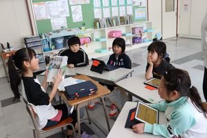 質問したり、教科書やリコーダーを見たりして、3年生への見通しをもっていました。