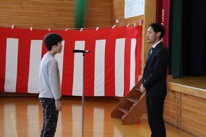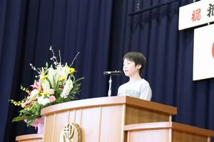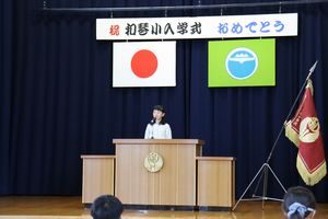 児童会副会長の話です。学校を引っ張る立場を自覚し、「みんな仲良く協力できる学校にしたい」と意気込みを語りました。
